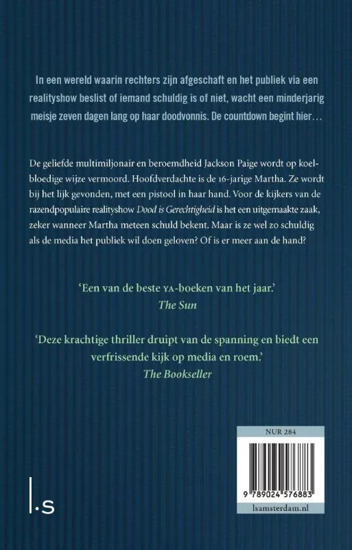 Multimiljonair en beroemdheid Jackson Paige is vermoord. De 16-jarige Martha wordt bij het lijk gevonden, met een pistool in haar hand. Het lijkt dus een uitgemaakte zaak, vooral in een maatschappij waarin geen rechters meer aan te pas komen maar het publiek via de populaire realityshow Dood is gerechtigheid beslist of iemand schuldig is of niet. Bovendien heeft Martha zelf schuld bekend. Maar is ze wel schuldig? Of is de realiteit veel complexer dan de media het publiek wil doen geloven?