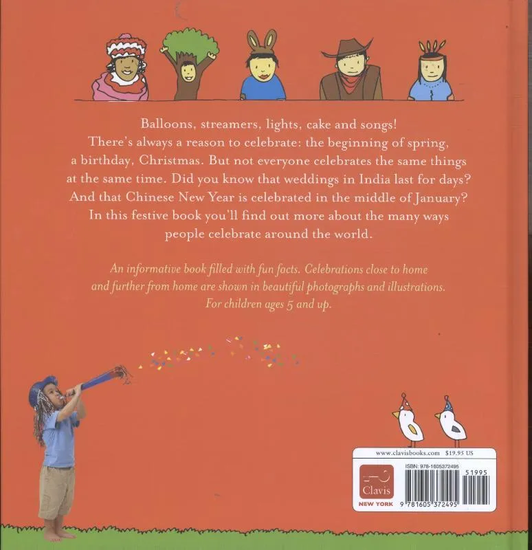 In China vieren ze Nieuwjaar later dan wij. In India duurt een huwelijksfeest een paar dagen. Kijk hoe mensen in allerlei landen feest vieren. Met kleurenfoto’s, grappige illustraties en vragen. Voorlezen vanaf ca. 5 jaar, zelf lezen vanaf ca. 7 jaar.