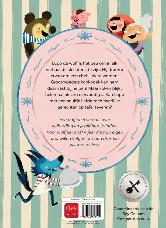 Lupo de wolf is het beu om in elk verhaal de slechterik te zijn. Hij droomt ervan om een chef-kok te worden. Grootmoeders kookboek kan hem daar vast bij helpen! Maar koken blijkt helemaal niet zo eenvoudig … Kan Lupo met een snuifje liefde toch heerlijke gerechten op tafel toveren? Een origineel verhaal over volharding en jezelf heruitvinden.Voor wolfjes vanaf 4 jaar die hun eigen pad willen volgen om hun dromen waar te maken.