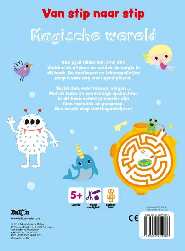 Verbind de stippen en ontdek de magie in dit boek. De doolhoven en tekenspelletjes zorgen voor nog meer speelplezier.