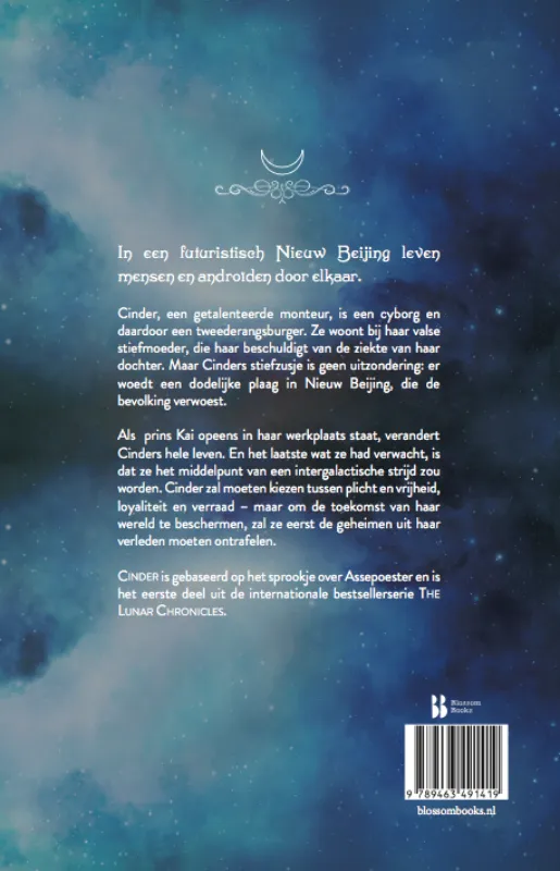 Als prins Kai opeens in haar werkplaats staat, verandert Cinders hele leven. En het laatste wat ze had verwacht, is dat ze het middelpunt van een intergalactische strijd zou worden. Cinder zal moeten kiezen tussen plicht en vrijheid, loyaliteit en verraad – maar om de toekomst van haar wereld te beschermen, zal ze eerst de geheimen uit haar verleden moeten ontrafelen.