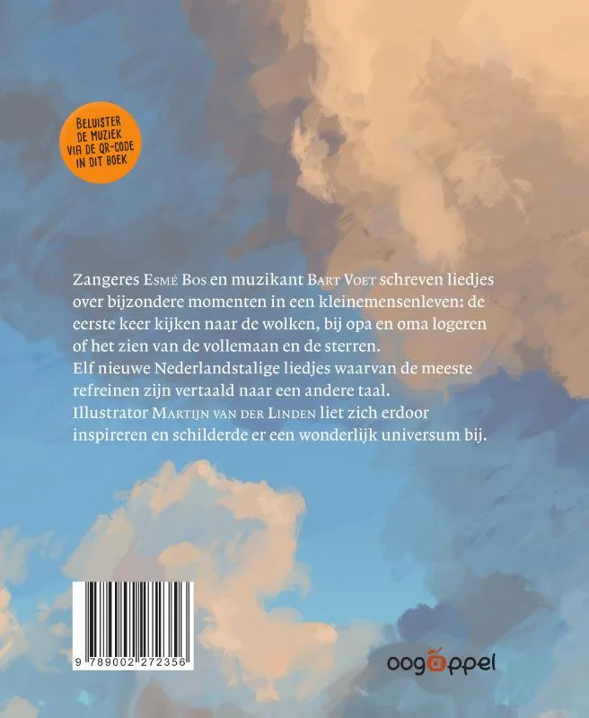 Zangeres Esmé Bos en muzikant Bart Voet schreven liedjes over bijzondere momenten in een kleinemensenleven: de eerste keer kijken naar de wolken, bij opa en oma logeren of het zien van de vollemaan en de sterren. Elf nieuwe Nederlandstalige liedjes waarvan de meeste refreinen zijn vertaald naar een andere taal. Illustrator Martijn van der Linden liet zich erdoor inspireren en schilderde er een wonderlijk universum bij.