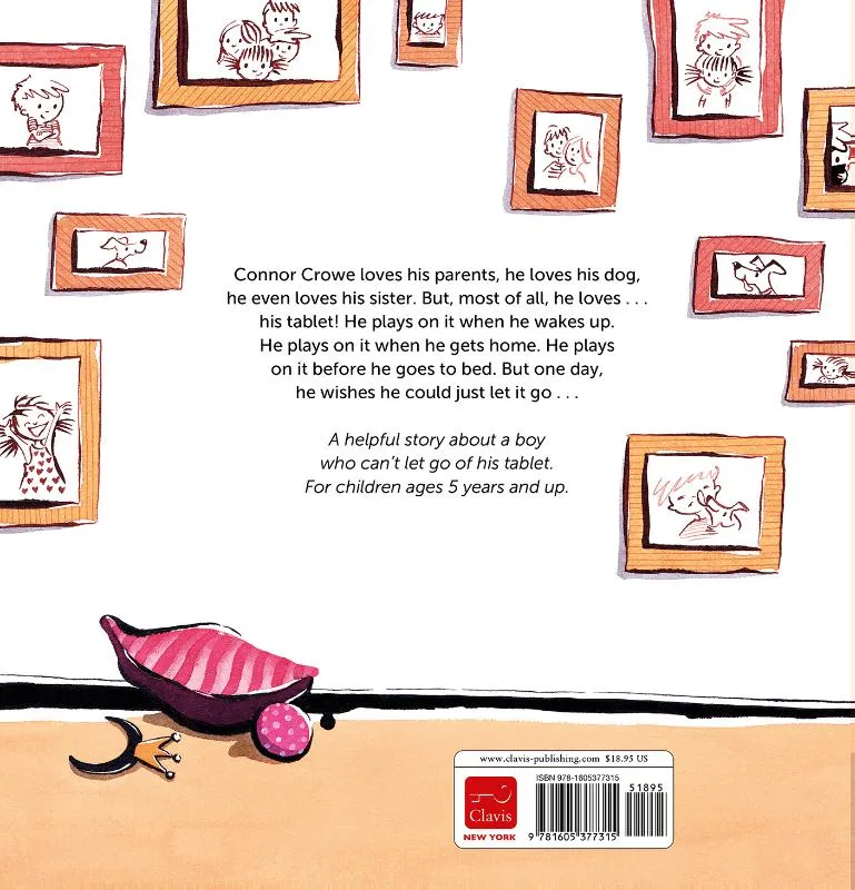 Connor Crowe speelt vaak en graag op zijn tablet, maar als het ding aan zijn hand blijft plakken, blijken andere dingen ook wel leuk om te doen. Prentenboek met kleurenillustraties. Vanaf ca. 5 jaar.