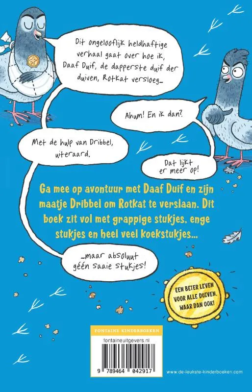 Katten opgepast! Daaf Duif schrijft een boek om Gemene Poes te verslaan om zo alle andere duiven te helpen.