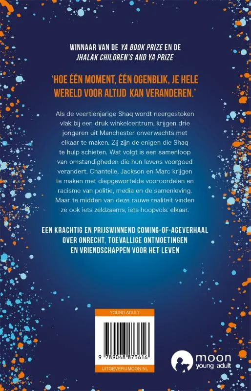 Winnaar van de YA Book Prize en de Jhalak Children’s and YA Prize<br><br>Als de veertienjarige Shaq wordt neergestoken vlak bij een druk winkelcentrum, krijgen drie jongeren uit Manchester onverwachts met elkaar te maken. Zij zijn de enigen die Shaq te hulp schieten. Wat volgt is een samenloop van omstandigheden die hun levens voorgoed verandert. Chantelle, Jackson en Marc krijgen te maken met diepgewortelde vooroordelen en racisme van politie, media en de samenleving. Maar te midden van deze rauwe realiteit vinden ze ook iets zeldzaams, iets hoopvols: elkaar.