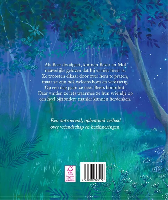Als Beer doodgaat, kunnen Bever en Mol nauwelijks geloven dat hij er niet meer is. Ze troosten elkaar door over hem te praten, maar ze zijn ook weleens boos en verdrietig. Op een dag gaan ze naar Beers boomhut. Daar vinden ze iets waarmee ze hun vriendje op een heel bijzondere manier kunnen herdenken…