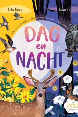 Maak 24 uur op onze planeet mee en verken de verschillende werelden die elk op een ander tijdstip ontwaken, met GLOW-IN-THE-DARK verrassingen! Spot de muildierherten die bij zonsopkomst van het gras knabbelen, terwijl vlakbij een poema rondsluipt. Kijk hoe kolibries door de lucht suizen in de ochtendzon. Bezoek een bos om vuurvliegjes te zien glinsteren als de avond valt en vang een glimp op van de nachtdieren die tevoorschijn komen in het donker. In één dag ontdek je de schoonheid, het mysterie en de verklaringen van de natuur, en waarom planten en dieren op een bepaald tijdstip wakker worden.