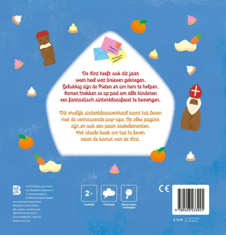 Dit vrolijk sinterklaasverhaal komt tot leven met de verrassende pop-ups. Op elke pagina zijn er ook een paar zoekelementen. Het ideale boek om toe te leven naar de komst van de Sint.