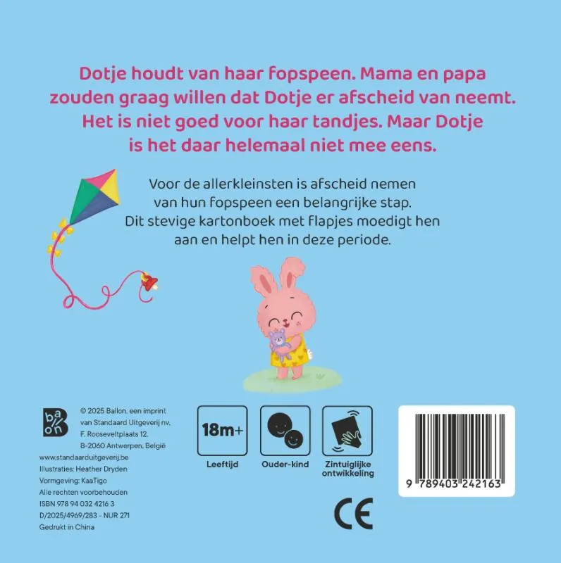Het afgeven van een speentje is voor veel kinderen (en hun ouders) een belangrijke mijlpaal. Dit lief, troostend en bemoedigend kartonboek met flapjes helpt hen hierbij.