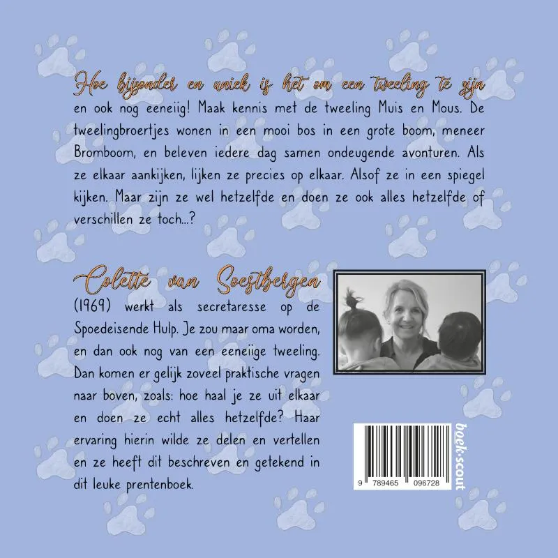 Tweeling zijn is heel bijzonder en uniek. Dit is een prentenboek dat dit op een leuke, speelse manier laat zien met de tweeling Muis en Mous. Ze lijken heel veel op elkaar, maar zijn ze ook hetzelfde?