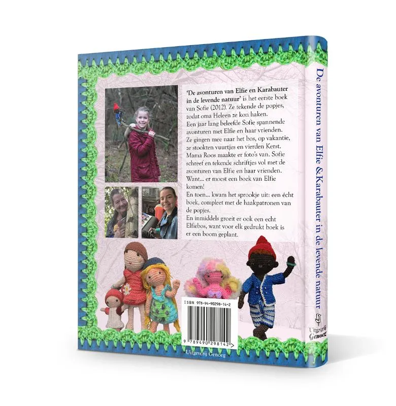 ‘De avonturen van Elfie en Karabauter in de levende natuur’ is het eerste boek van Sofie (2012). Ze tekende de popjes, zodat oma Heleen ze kon haken.