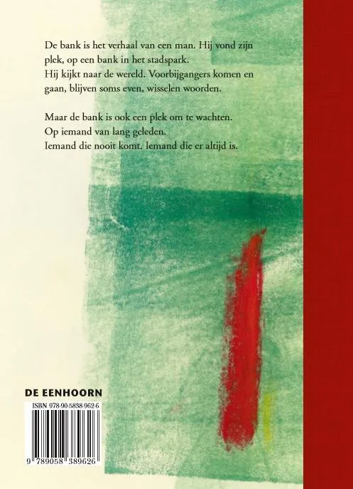 De bank is het verhaal van een man. Hij vond zijn plek op een bank in het stadspark en kijkt van daar dag na dag naar de wereld. Alles lijkt rustig. Voorbijgangers komen en gaan. Soms blijven ze even en praten met hem … Maar de bank blijkt ook een plek om te wachten. Op iemand van lang geleden. Op iemand die nooit komt, maar er toch altijd is. De man op de bank is een buitenstaander die aan de zijlijn van het leven zit en toekijkt hoe anderen hun dagelijkse bestaan vormgeven.