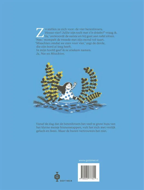 De berenbroers komen van ver. Als ze in een klein dorpje aankomen, nodigt een meisje ze uit om in haar huisje te komen wonen. De beren vertellen haar over de zware reis die ze achter de rug hebben, maar ze maken haar vooral enorm aan het lachen. Samen organiseren ze een feestje voor de buurt. Maar niemand komt… Het meisje gaat met de buren praten om het te begrijpen. En ondertussen maken de berenbroers zich nuttig. Dan staat het gezellige huisje op een nacht in brand. Misschien is dit toch niet de plek waar ze thuishoren? Het is tijd om weer te vertrekken. Ze gaan met z’n vieren; het meisje gaat mee. Ook zij zoekt liever een thuis waar zij en haar vrienden echt welkom zijn. Zullen ze het vinden?