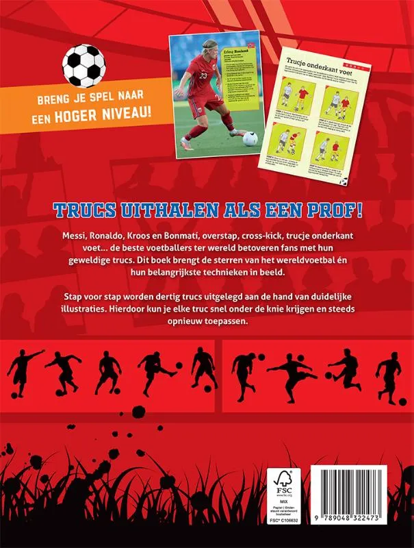 Trucs uithalen als een prof!Messi, Ronaldo, Kroos en Bonmatí, overstap, cross-kick, trucje onderkant voet… de beste voetballers ter wereld betoveren fans met hun geweldige trucs. Dit boek brengt de sterren van het wereldvoetbal én hun belangrijkste technieken in beeld. Stap voor stap worden dertig trucs uitgelegd aan de hand van duidelijke illustraties. Hierdoor kun je elke truc snel onder de knie krijgen en steeds opnieuw toepassen.