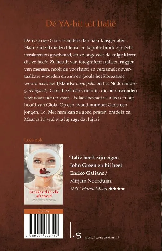 De bijzondere woorden van Gioia van Enrico Galiano (shortlisted voor Beste Boek voor Jongeren 2020) is de overrompelende, eigentijdse YA-hit uit Italië over een meisje dat worstelt met haar identiteit en haar plaats in de wereld. Enrico schreef ook Sterker dan elk afscheid.