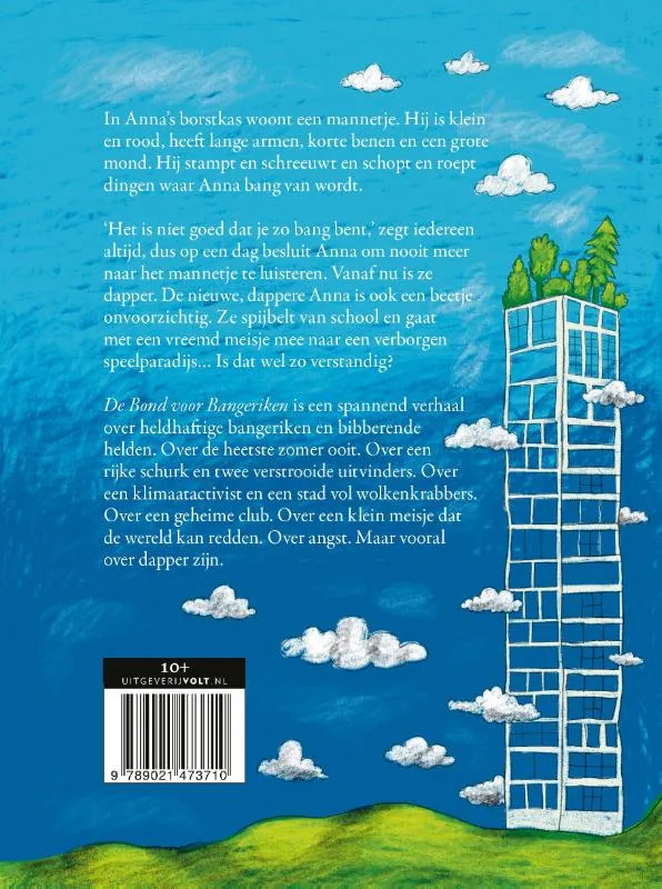 ‘Het is niet goed dat je zo bang bent,’ zegt iedereen altijd, dus op een dag besluit Anna om nooit meer naar het mannetje te luisteren. Vanaf nu is ze dapper. De nieuwe, dappere Anna is ook een beetje onvoorzichtig. Ze spijbelt van school en gaat met een vreemd meisje mee naar een verborgen speelparadijs… Is dat wel zo verstandig?
