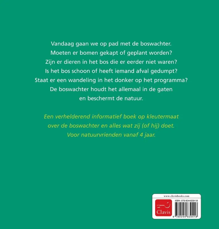Een verhelderend informatief boek op kleutermaat over de boswachter en alles wat zij (of hij) doet. Voor natuurvrienden vanaf 4 jaar.