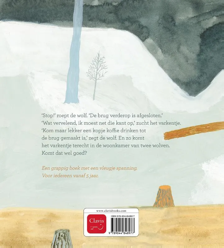 ‘Stop!’ roept de wolf. ‘De brug verderop is afgesloten.’