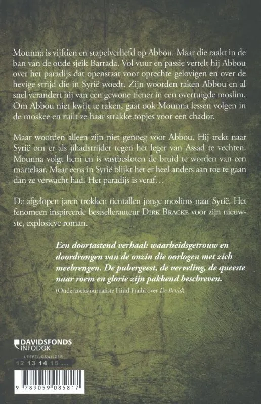 Mounna is vijftien en stapelverliefd op Abbou. Maar die raakt in de ban van de oude Sjeik Barrada. Vol vuur en passie vertelt hij Abbou over het Paradijs dat open ligt voor oprechte gelovigen en over de hevige strijd die in Syrië woedt. Zijn woorden raken Abbou en in geen tijd verandert hij van een gewone tiener in een overtuigde moslim. Om Abbou niet kwijt te raken, gaat ook Mounna lessen volgen in de moskee en ruilt ze haar strakke topjes voor een niqaab.Maar woorden alleen zijn niet genoeg voor Abbou. Hij trekt naar Syrië om er als jihadstrijder tegen het leger van Assad te vechten. Mounna volgt hem en is vastbesloten de bruid te worden van een martelaar. Maar eens in Syrië blijkt het er heel anders aan toe te gaan dan ze verwacht hadden. Het Paradijs is veraf … De afgelopen jaren trokken tientallen jonge moslims naar Syrië. Het fenomeen inspireerde bestsellerauteur Dirk Bracke deze explosieve roman.