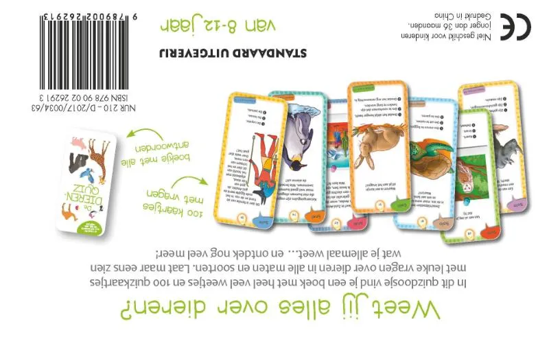 In dit quizdoosje vind je een boek met heel veel weetjes en 100 quizkaartjes met leuke vragen over dieren in alle maten en soorten. Laat maar eens zien wat je allemaal weet… en ontdek nog veel meer!