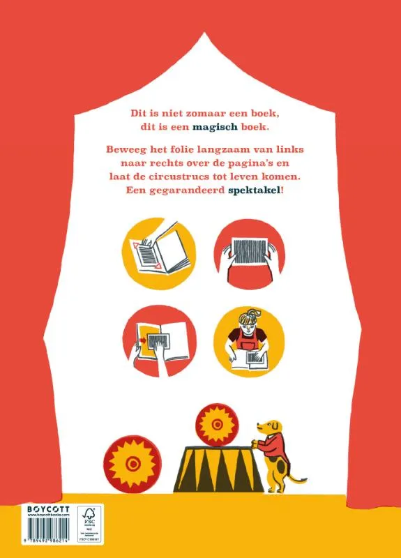 Door een gestreept folie over elke pagina heen te bewegen, komen de illustraties in dit boek als bij toverslag tot leven. Via deze animatietechniek, line moiré, kunnen lezers niet alleen zelf magie beoefenen, maar ook kennismaken met verschillende circusberoepen.