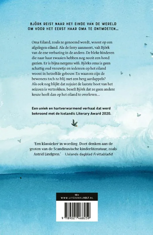 Oma Eiland, zoals ze genoemd wordt, woont op een afgelegen eiland. Als de ferry aanmeert, valt Björk van de ene verbazing in de andere. De bleke kinderen die naar haar zwaaien hebben nog nooit een hond gezien. Er is bijna nergens wifi. Björks oma is geen schattig oud vrouwtje en iedereen op het eiland woont in hetzelfde gebouw. En waarom zijn de bewoners toch zo blij met een berg aardappels?