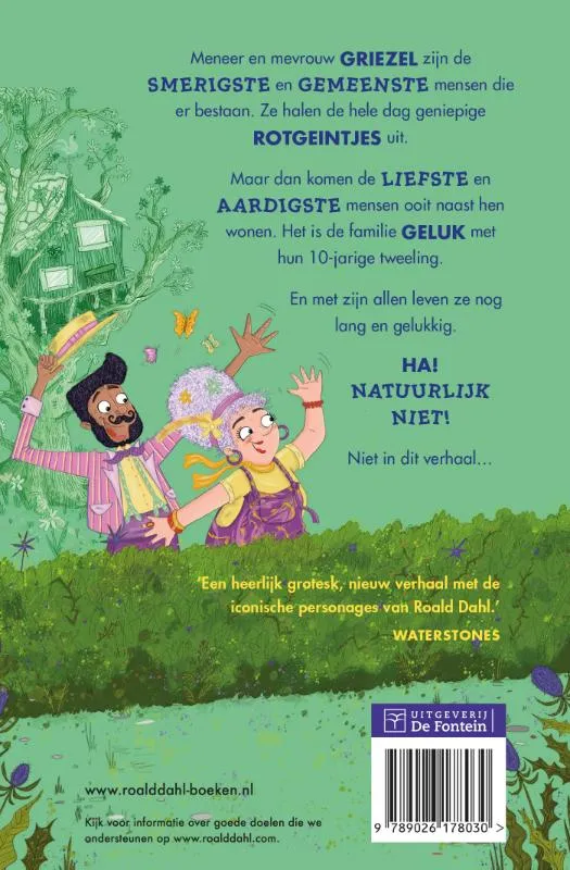 ‘Een heerlijk nieuw grotesk verhaal met de iconische personages van Roald Dahl, waarin een misselijkmakend perfecte familie naast het knorrige stel komt wonen.’ – WATERSTONES