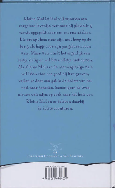 Kleine Mol leidt al vijf minuten een zorgeloos leventje, wanneer hij plotseling wordt opgepakt door een enorme adelaar. Die brengt hem naar zijn nest hoog op de berg, als hapje voor zijn pasgeboren zoon Arie. Maar Arie vindt het eigenlijk een beetje zielig en wil het molletje niet opeten.