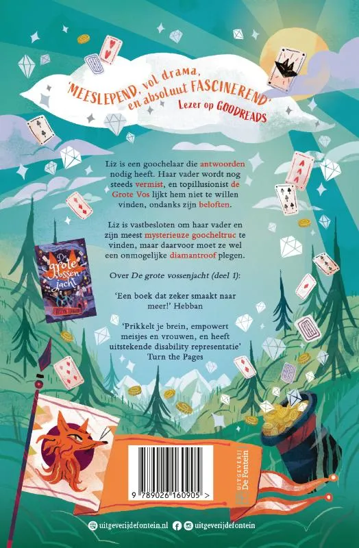 De grote Vos deel 2 is een superspannende detective. Liz is vastbesloten om haar vader en zijn goocheltruc te vinden, maar daarvoor moet ze wel een onmogelijke diamantroof plegen. Vanaf 9 jaar.