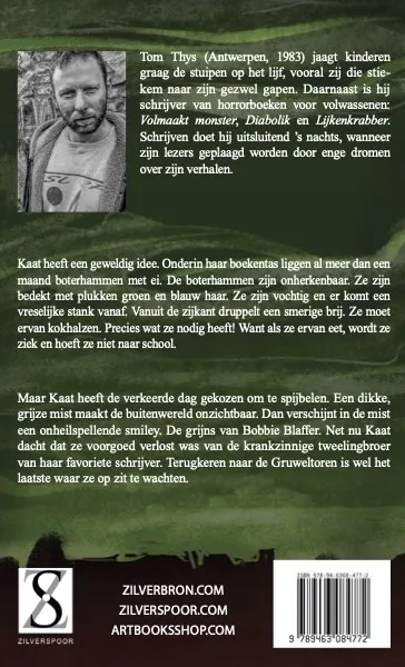 Maar Kaat heeft de verkeerde dag gekozen om te spijbelen. Een dikke, grijze mist maakt de buitenwereld onzichtbaar. Dan verschijnt in de mist een onheilspellende smiley. De grijns van Bobbie Blaffer. Net nu Kaat dacht dat ze voorgoed verlost was van de krankzinnige tweelingbroer van haar favoriete schrijver. Terugkeren naar de Gruweltoren is wel het laatste waar ze op zit te wachten.