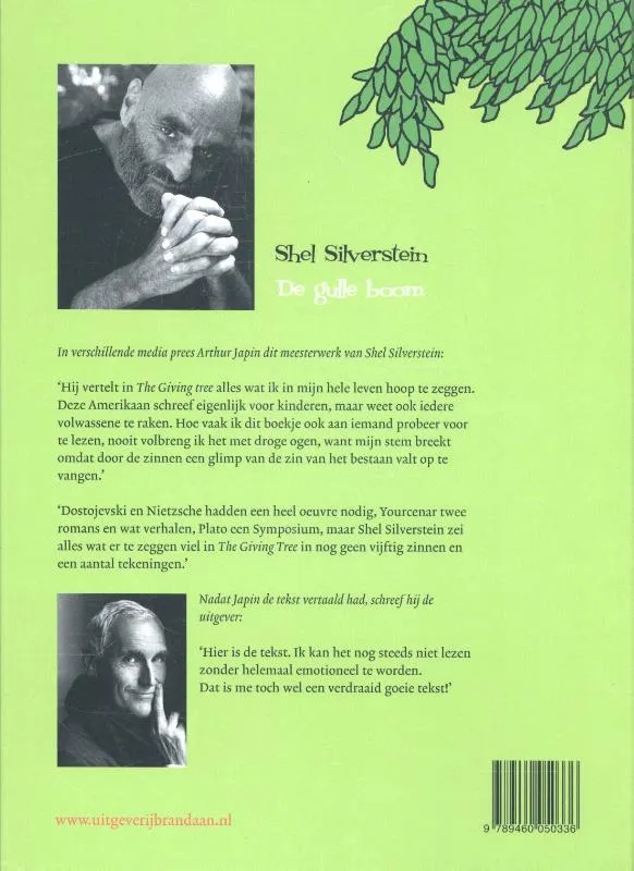 Een jongen en een boom zijn dikke vrienden. Als de jongen ouder wordt, heeft hij steeds meer van de boom nodig. Tenslotte is de boom alleen nog een oude stronk. Maar dat is genoeg. Prentenboek met eenvoudige zwart-wittekeningen. Vanaf ca. 5 jaar.