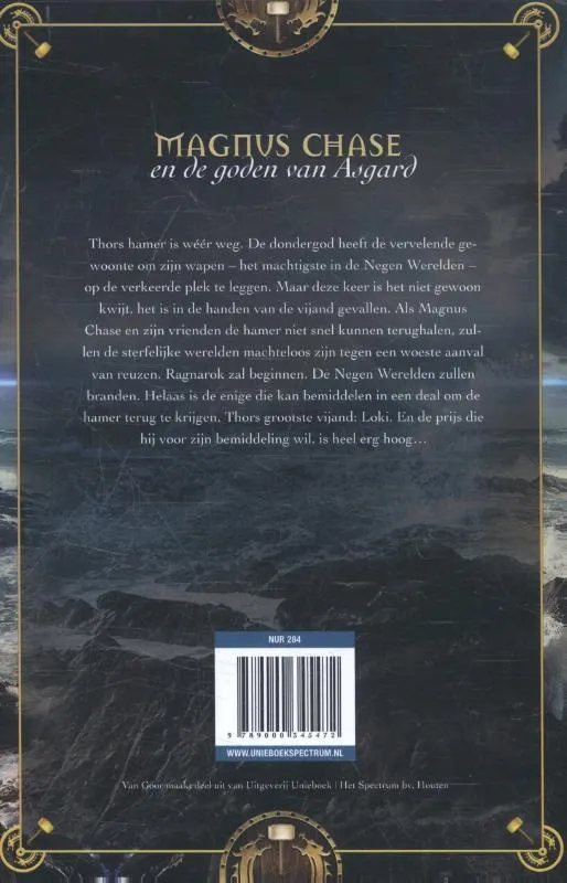 Thors hamer is wéér weg. De dondergod heeft de vervelende gewoonte om zijn wapen – het machtigste in de Negen Werelden – op de verkeerde plek te leggen. Maar deze keer is het niet gewoon kwijt, het is in de handen van de vijand gevallen. Als Magnus Chase en zijn vrienden de hamer niet snel kunnen terughalen, zullen de sterfelijke werelden machteloos zijn tegen een woeste aanval van reuzen. Ragnarok zal beginnen. De Negen Werelden zullen branden. Helaas is de enige die kan bemiddelen in een deal om de hamer terug te krijgen, Thors grootste vijand: Loki. En de prijs die hij voor zijn bemiddeling wil, is heel erg hoog…