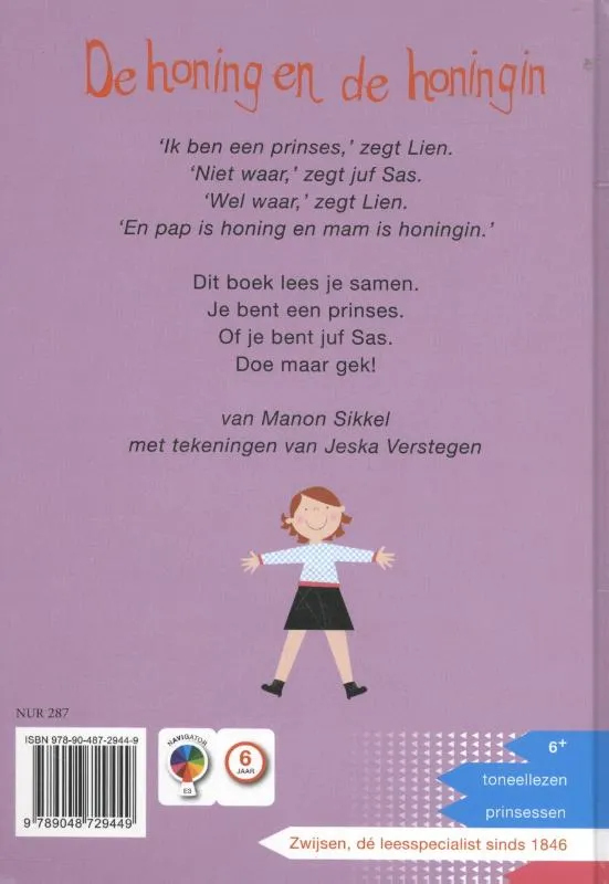 ‘Ik ben een prinses,’ zegt Lien. ‘Niet waar,’ zegt juf. ‘Wel waar,’ zegt Lien. ‘En pap is honing en mam is honingin.’ Dit is een Toneelleesboek. De teksten lees je samen hardop. Kies wie je wilt zijn en lees dan om de beurt je rol.