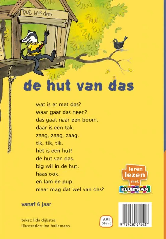 ‘De hut van das’ is het vijfde deel in de serie de klas van mees bok. In elk (los van elkaar te lezen) deel staat een ander dier uit de klas van mees bok centraal, en dit keer is Das aan de beurt. Hij bouwt een hut en in de hut is hij de baas! Ook dit deel is weer geschreven op AVI-niveau Start. Superleuk voor kinderen in groep 3!