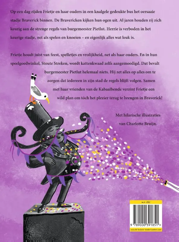 Op een dag rijden de kleurrijke Frietje en haar ouders in een knalgele gedeukte bus het oersaaie stadje Braverick binnen. De Bravericken weten niet wat ze zien. Al jaren volgen zij keurig de strenge regels van burgemeester Pietlut. Herrie is verboden, net zoals spelen en knoeien, en eigenlijk alles wat leuk is. Frietje en haar ouders houden echter van feest, spelletjes en vrolijkheid.