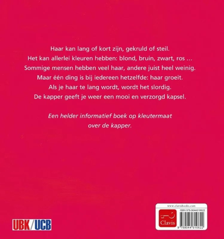 Haar kan lang of kort zijn, gekruld of steil. Het kan allerlei kleuren hebben: blond, bruin, zwart, ros Sommige mensen hebben veel haar, andere juist heel weinig. Maar één ding is bij iedereen hetzelfde: haar groeit. Als je haar te lang wordt, wordt het slordig. De kapper geeft je weer een mooi en verzorgd kapsel.