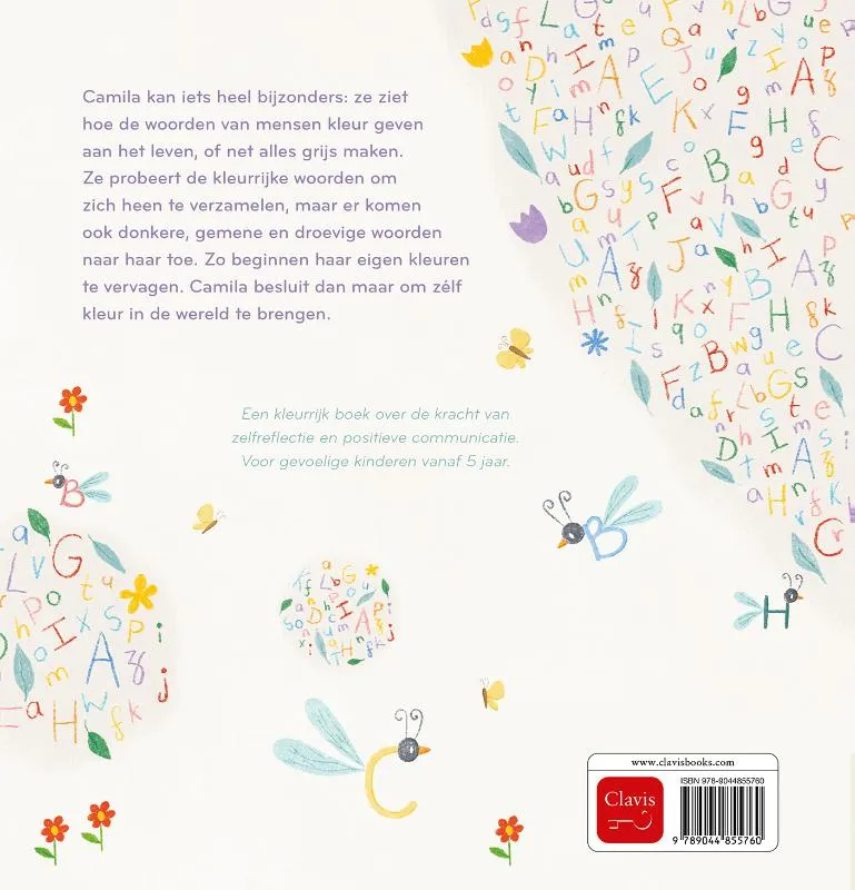 Camila kan iets heel bijzonders: ze ziet hoe de woorden van mensen kleur geven aan het leven, of net alles grijs maken. Ze probeert de kleurrijke woorden om zich heen te verzamelen, maar er komen ook donkere, gemene en droevige woorden naar haar toe. Zo beginnen haar eigen kleuren te vervagen. Camila besluit dan maar om zélf kleur in de wereld te brengen.