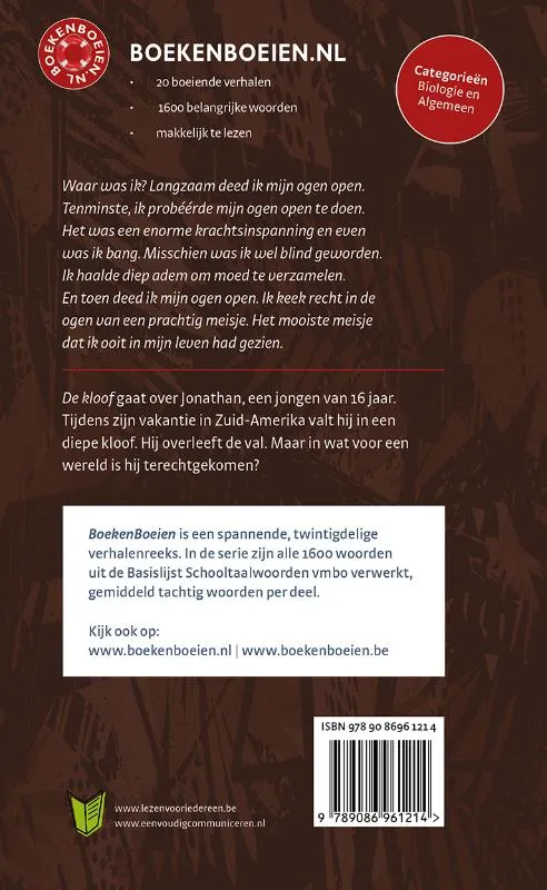 Jonathan (16) is tijdens zijn vakantie in een kloof gevallen. Hij wordt verzorgd door Raya. Ze worden verliefd. Maar dan doet Jonathan een schokkende ontdekking. Verhaal in korte zinnen en gemakkelijke woorden. Vanaf ca. 13 jaar.