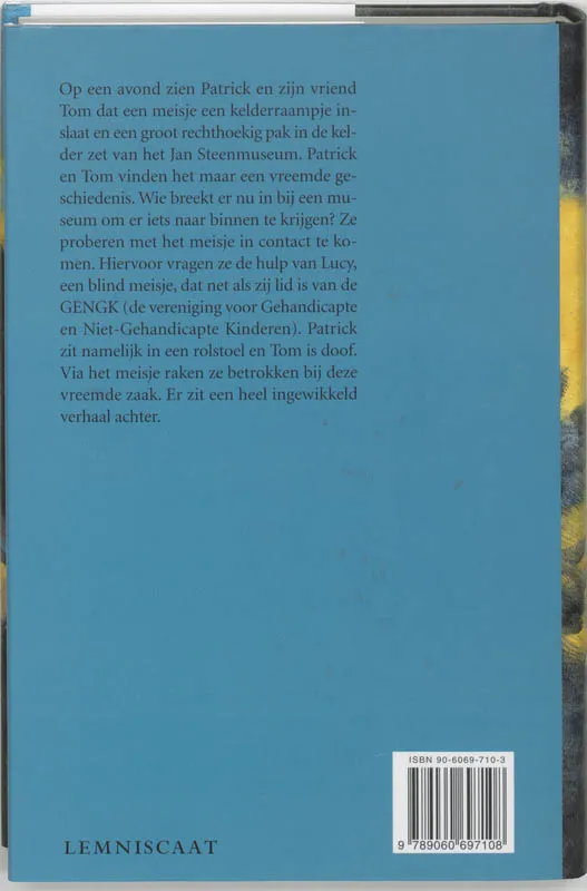 Op een avond zien ze een meisje het kelderraam van het Jan Steenmuseum inslaan. Ze zet een groot rechthoekig binnen. Wie breekt er nu in bij een museum om er iets naar binnen te krijgen? Patrick en Tom gaan op zoek naar het meisje en worden daarbij geholpen door de blinde Lucy.