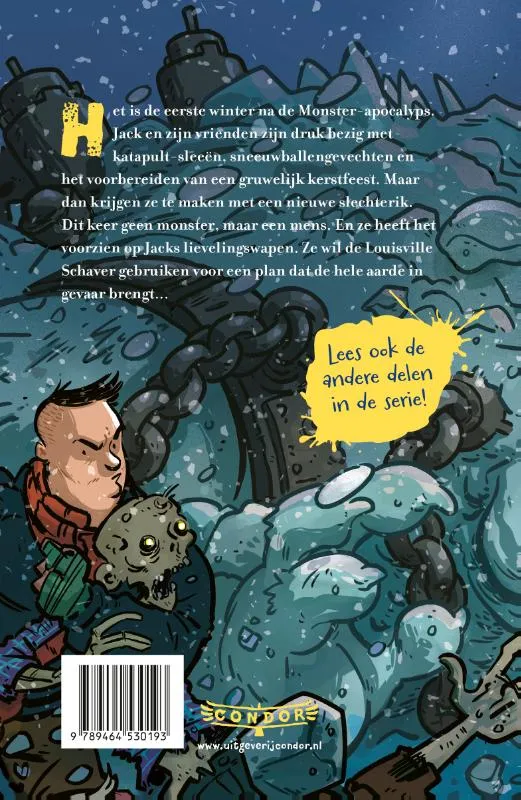 Het is de eerste winter na de monster-apocalyps. Jack en zijn vrienden zijn druk bezig met katapult-sleeën, epische sneeuwballengevechten en het voorbereiden van een gruwelijk kerstfeest. Maar dan krijgen ze te maken met een nieuwe slechterik. Dit keer geen monster, maar een mens. En ze heeft het voorzien op Jacks lievelingswapen: de Louisville Schaver!<br>