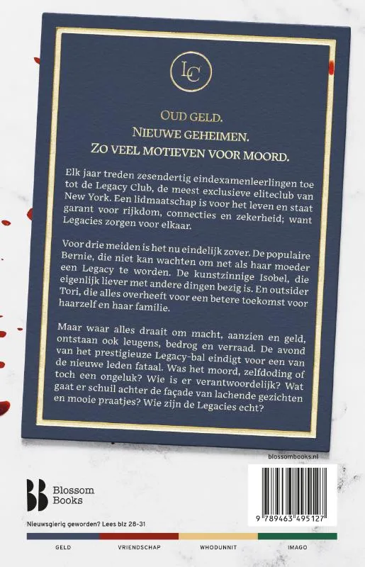 Maar waar alles draait om macht, aanzien en geld, ontstaan ook leugens, bedrog en verraad. De avond van het prestigieuze Legacy-bal eindigt voor een van de nieuwe leden fataal. Was het moord of toch een ongeluk? Wie is er verantwoordelijk? Wat gaat er schuil achter de façade van lachende gezichten en mooie praatjes? Wie zijn de Legacies echt?