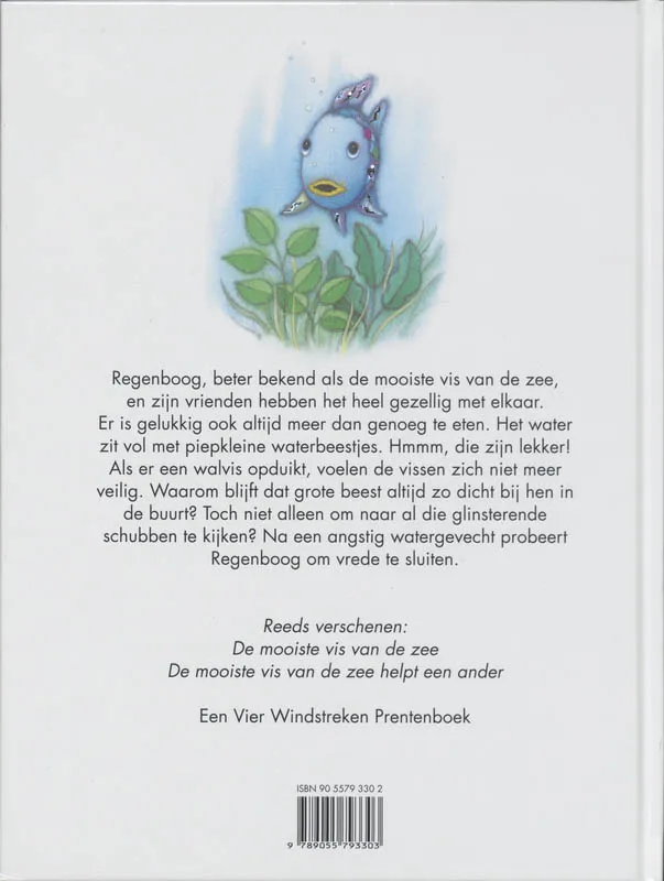 Regenboog en zijn vrienden hebben het heel gezellig met elkaar. Er is gelukkig ook altijd meer dan genoeg te eten. Het water zit vol met piepkleine waterbeestjes. Mmm, die zijn lekker! Als er een walvis opduikt, voelen de vissen zich niet meer veilig. Waarom blijft dat grote beest altijd zo dicht in de buurt? Toch niet alleen om naar al die glinsterende schubben te kijken? Na een angstig watergevecht probeert Regenboog om vrede te sluiten.