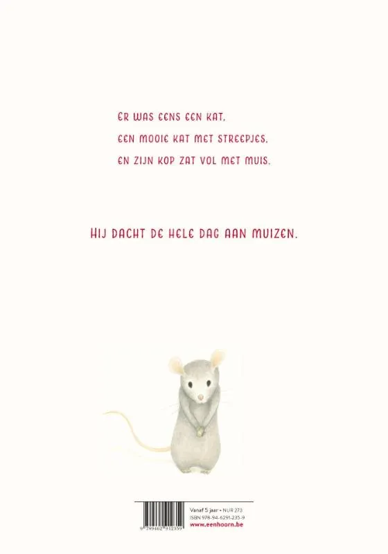 Er was eens een kat. Zijn vacht had streepjes, en zijn kop zat vol met muizen. Er was de muis met een scheve staart, de muis met een slecht humeur … De kat had het zo druk met aan muizen te denken dat hij voor zijn vrienden geen tijd meer had. En dan was er nog die ene muis die hij zich maar niet voor de geest kon halen, hoe hard hij ook probeerde …