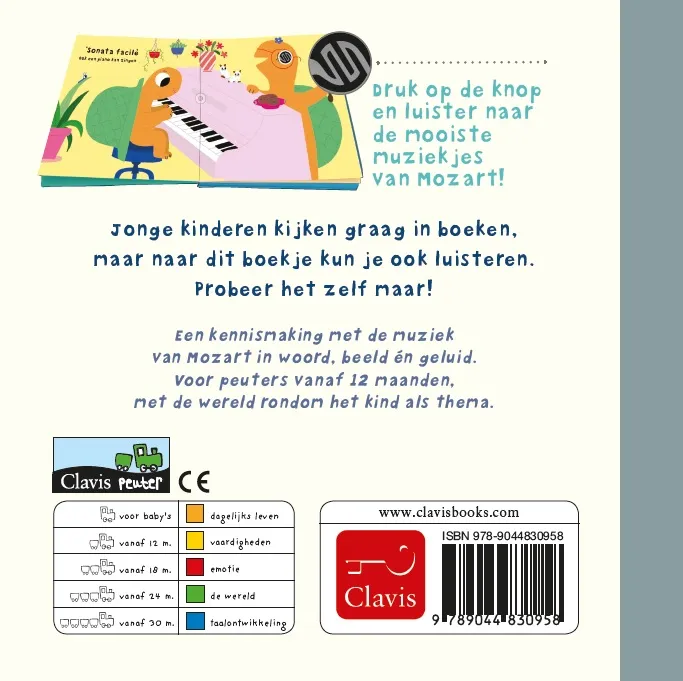 Een kennismaking met de muziek van Mozart in woord, beeld én geluid. Voor peuters vanaf 12 maanden,met de wereld rondom het kind als thema. Jonge kinderen kijken graag in boeken, maar naar dit boekje kun je ook luisteren. Probeer het zelf maar!