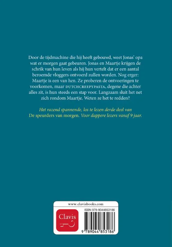 Door de tijdmachine die hij heeft gebouwd, weet Jonas’ opa wat er morgen gaat gebeuren. Jonas en Maartje krijgen de schrik van hun leven als hij hun vertelt dat er een aantal beroemde vloggers ontvoerd zullen worden. Nog erger: Maartje is een van hen. Ze proberen de ontvoeringen te voorkomen, maar DUTCHCREEPYPASTA, degene die achter alles zit, is hen steeds een stap voor. Langzaam sluit het net zich rondom Maartje. Weten ze het te redden?