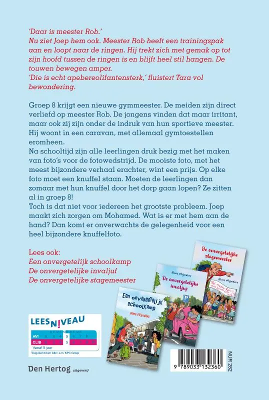 De leerlingen van groep 8 krijgen een nieuwe gymmeester. Hij woont in een caravan omringd door gymtoestellen. Ondertussen wil Joep erachter komen wat er met Mohamed aan de hand is de laatste tijd. Met zwart-witillustraties. AVI M5. Vanaf ca. 8 jaar.