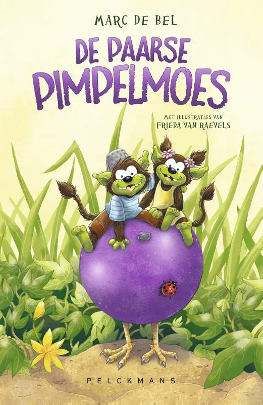 paarse pompelmoes met gele pimpelmeespootjes (zie voorkant).