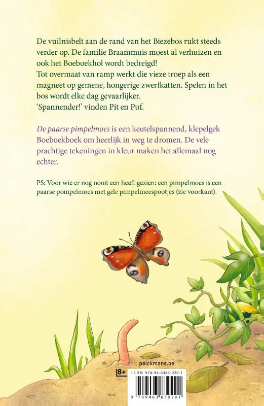 De paarse pimpelmoes is een keutelspannend, klepelgek Boeboekboek om heerlijk in weg te dromen. De vele prachtige tekeningen in kleur maken het allemaal nog echter.