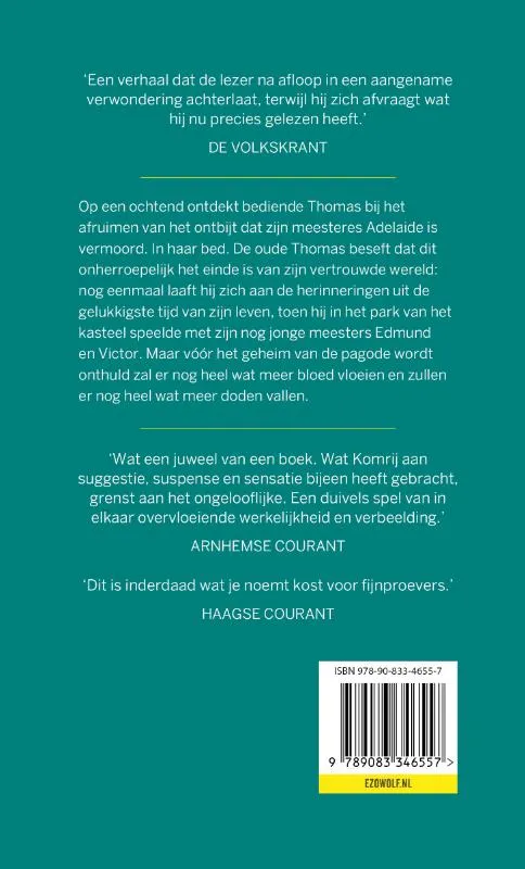 Op een ochtend ontdekt bediende Thomas bij het afruimen van het ontbijt dat zijn meesteres Adelaide is vermoord. In haar bed. De oude Thomas beseft dat dit onherroepelijk het einde is van zijn vertrouwde wereld: nog eenmaal laaft hij zich aan de herinneringen uit de gelukkigste tijd van zijn leven, toen hij in het park van het kasteel speelde met zijn nog jonge meesters Edmund en Victor. Maar vóór het geheim van de pagode wordt onthuld zal er nog heel wat meer bloed vloeien en zullen er nog heel wat meer doden vallen.