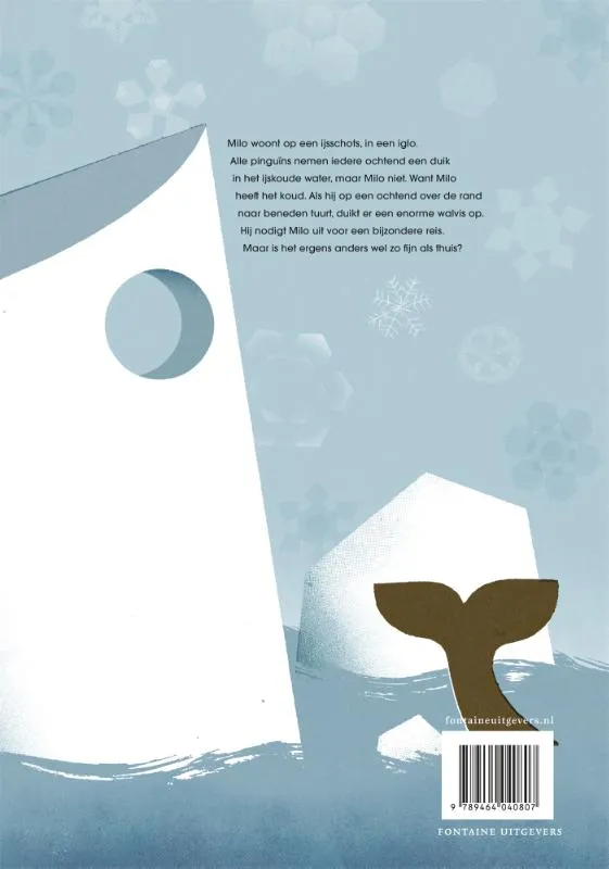 is namelijk een pinguïn. Alle pinguïns nemen iedere ochtend een duik in het ijskoude water, maar Milo niet. Want Milo heeft het koud. Terwijl hij over de rand naar beneden tuurt, duikt er ineens een enorme walvis voor zijn neus op. En met die ontmoeting begint een bijzondere reis voor Milo. Hij ontdekt kleuren, planten en warmte. Maar is het ergens anders echt wel zo fijn als thuis?